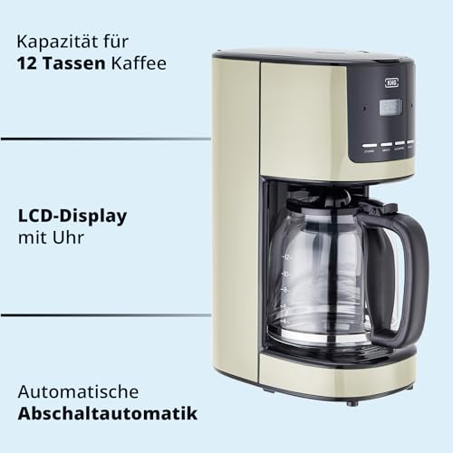 [Kaffeemaschine] Die Kaffeemaschine ist über einem herausnehmbarem Permanentfilter ausgestattet. Die Funktionstasten und der Display sehen nach eine einfache Bedienung und die Glaskanne ist großgenug statt dessen bis zu 12 Tassen Kaffee.